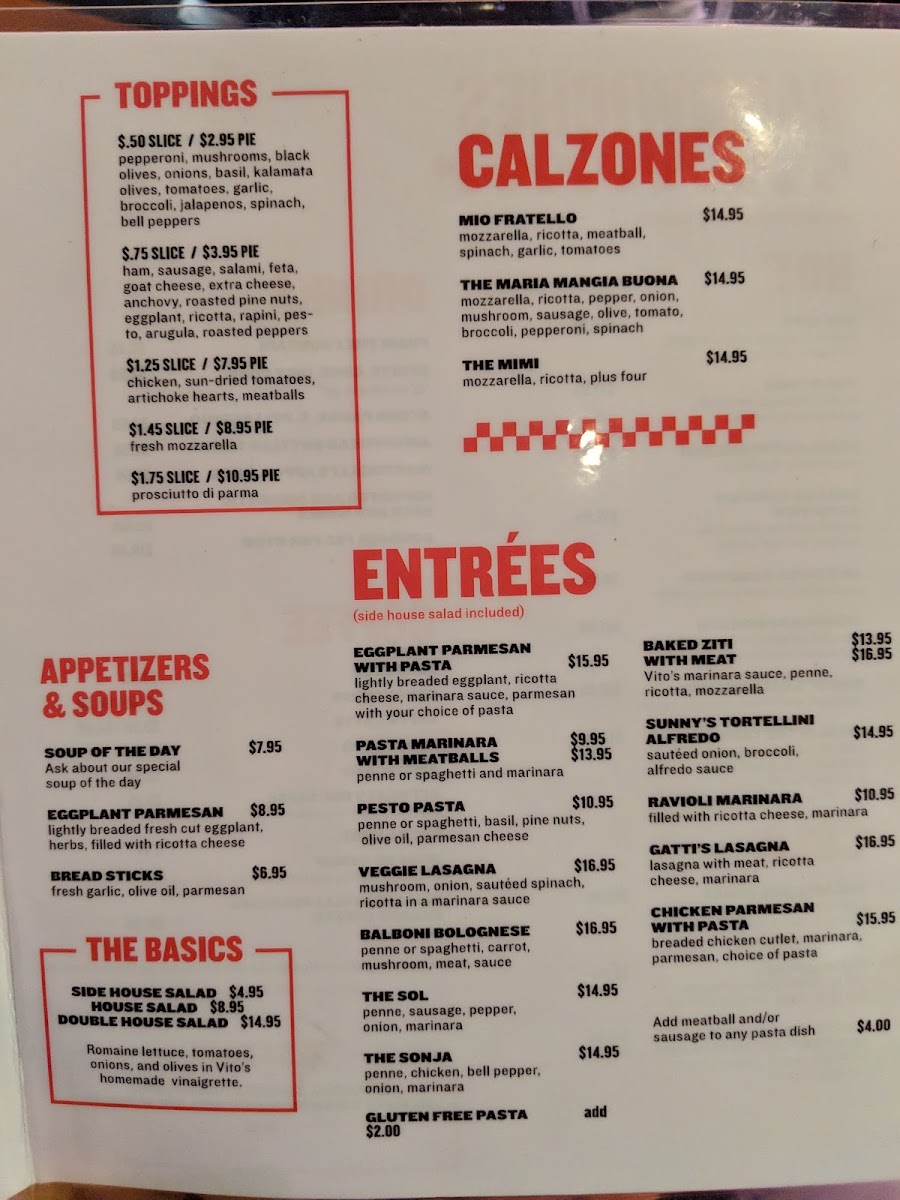 The menu at Vito's is a celebration of flavors and quality ingredients. Their 12-inch Gluten Free Pizza options are particularly noteworthy, featuring delectable Specialty GF Pies priced at $18.00 and a classic 12" Gluten Free Cheese Pie, laden with rich mozzarella cheese and zesty red sauce for just $17.00. Customer reviews highlight the impressive cheese-to-sauce ratio, making every bite delightfully mouthwatering. Other signature offerings include generous pepperoni slices, known for their bold flavors and just the right amount of cheesy goodness.